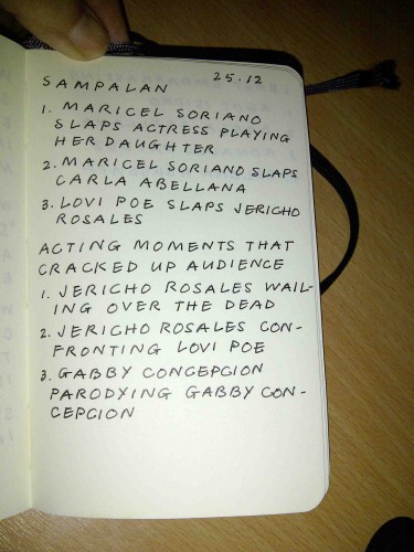 We were supposed to open our MMFF binge with the 330pm screening of Manila Kingpin: The Asiong Salonga Story. When we got to the cineplex Manila Kingpin wasn’t showing at all, and no one could say why. We asked Tikoy Aguiluz, the director who has disavowed the final product, if he’d taken out a restraining order on the film. Aguiluz said the film could be shown IF his name was removed from the credits. Our guess is, the credits were still being revised. Waiting for official explanation.