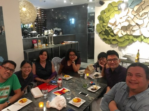Writing Boot Camp (Baguio) dinner at our favorite Italian restaurant in Makati whose name I’m not telling you, what, so it’ll be so full we can’t get a table? L-R: Gary, Reina, Annalyn, me, Vicky, Von, Allan.