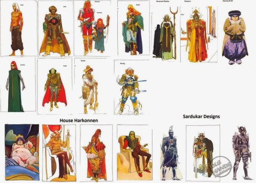 Moebius’s character designs for a movie of Dune that was never made. Sardaukar, Fenring, etc.