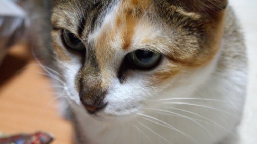 Buffy, Jacob’s sister, is from the family of cats that has lived downstairs in my building for many years. Several times a week she would present the guards with a freshly-killed rat that was almost as big as she was. After she gave birth to four kittens she looked so scrawny and exhausted that after the kittens were weaned I decided to adopt her. Now the vicious killer is a sweetie.
