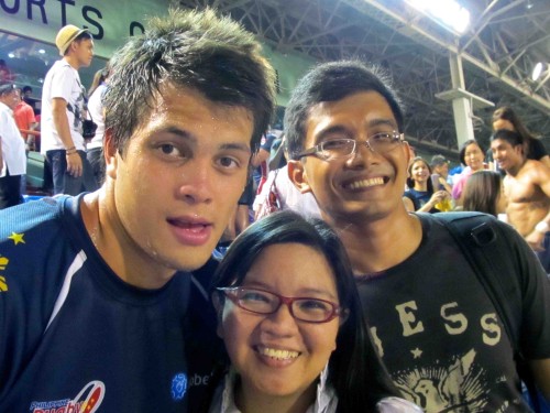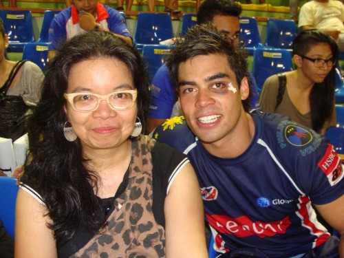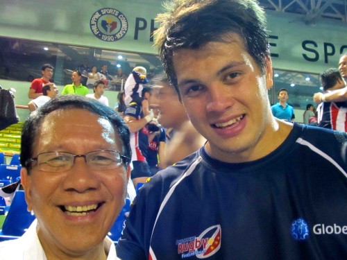 Hindi lamang mga sanggol kundi ang aming kaibigang publisista na si Edd Fuentes ang nagpakuha ng ritrato kasama si Patrice. Madalas kaming tanungin ni Edd kung ano bang ka-etchingan yang ragbi-ragbi na yan, kaya’t isinama namin siya. Natuwa naman ito at manonood ulit. Salamat din sa mga mambabasa ng blog na ito na lumapit sa amin at nagpakilala. Hindi naniniwala si Edd na may nagbabasa dito hahahahaha.